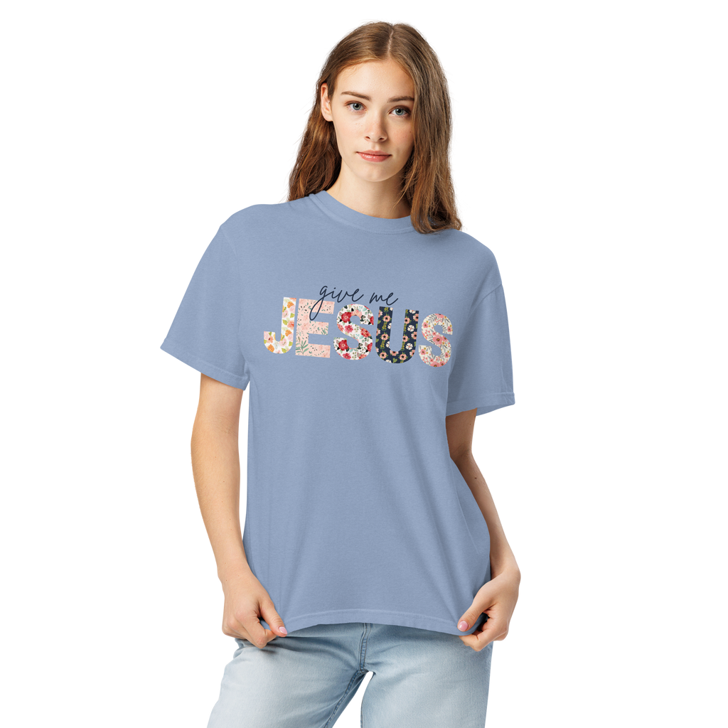 This beautifully designed “Give Me Jesus” tee features elegant floral accents surrounding a timeless truth—because sometimes, that’s all our heart really needs.